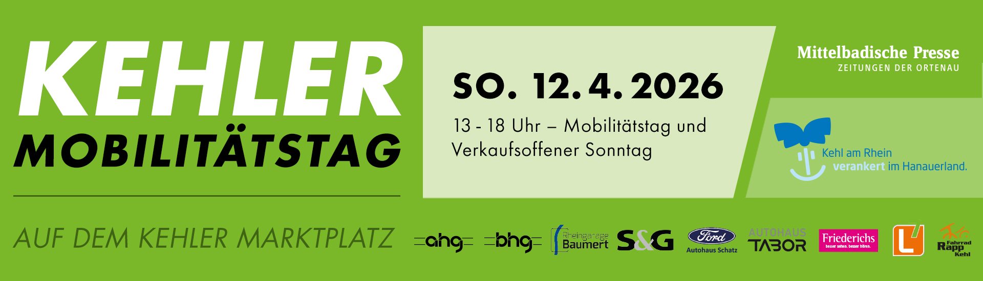 Am Sonntag, den 12. April 2026, verwandelt sich der Kehler Marktplatz vor der Friedenskirche von 13:00 bis 18:00 Uhr in ein Zentrum voller Innovation, Mobilität und Familienfreude!